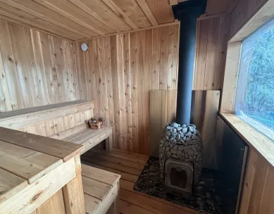 Our crew starts the wood stoves in the morning, tending the fires until the sauna and hot tub are at the perfect temperature. By afternoon, the space is ready for guests to sink into deep relaxation, reflection, and restoration.